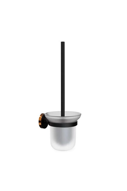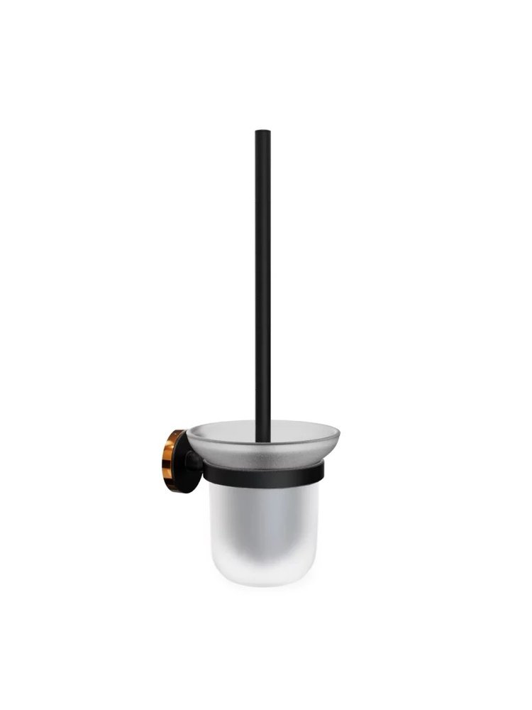 Ерш для унитаза со стеклянной колбой и декоративными кольцами. Черное покрытие гармонично сочетается с современными интерьерами и подчеркивает утонченный вкус. Идеален для бытового и коммерческого применения — в квартирах, офисах, гостиницах и ресторанах.