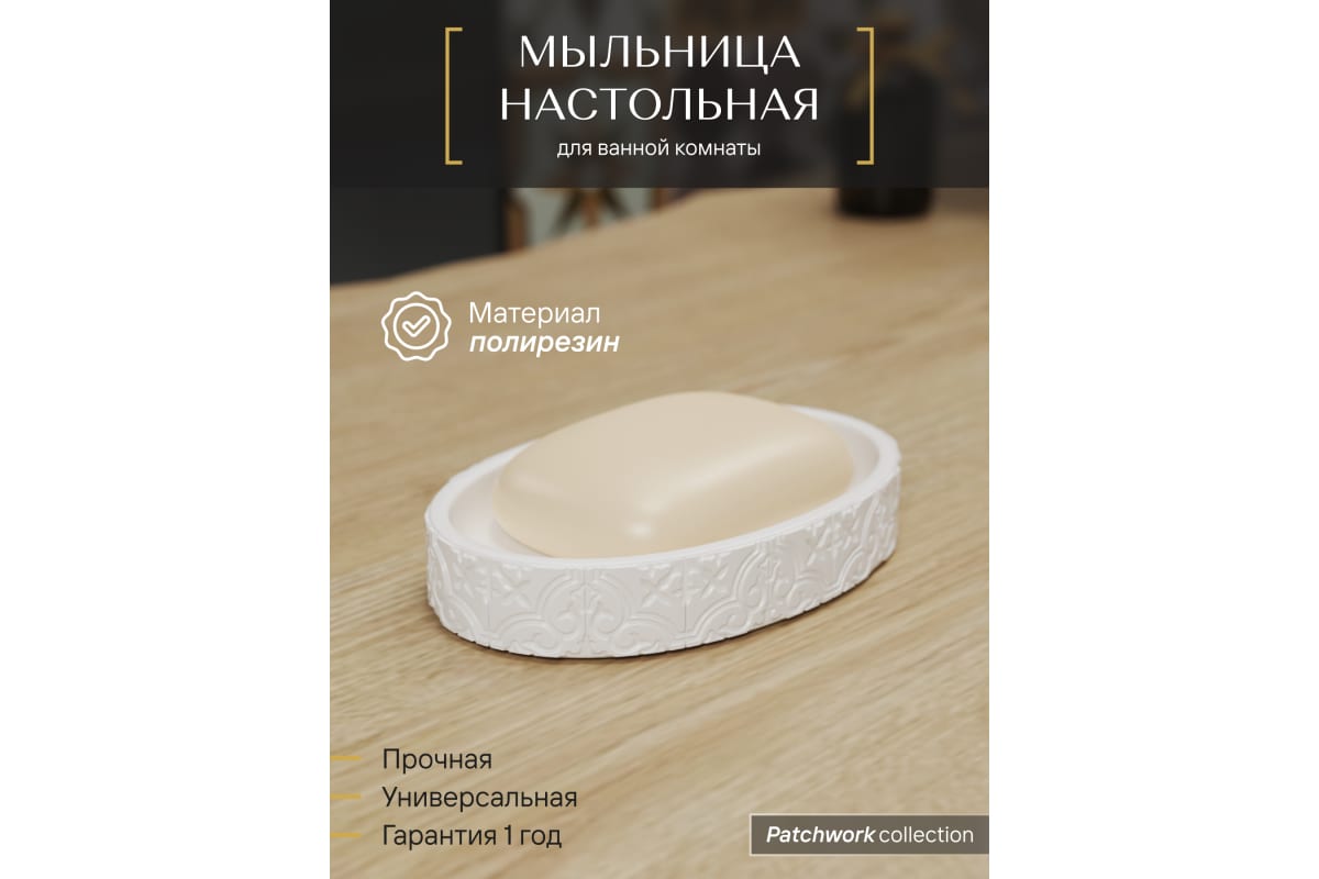 Мыльница настольная, полирезин, белая "Fora PatchWork" PCH036 в Спасск-Дальний