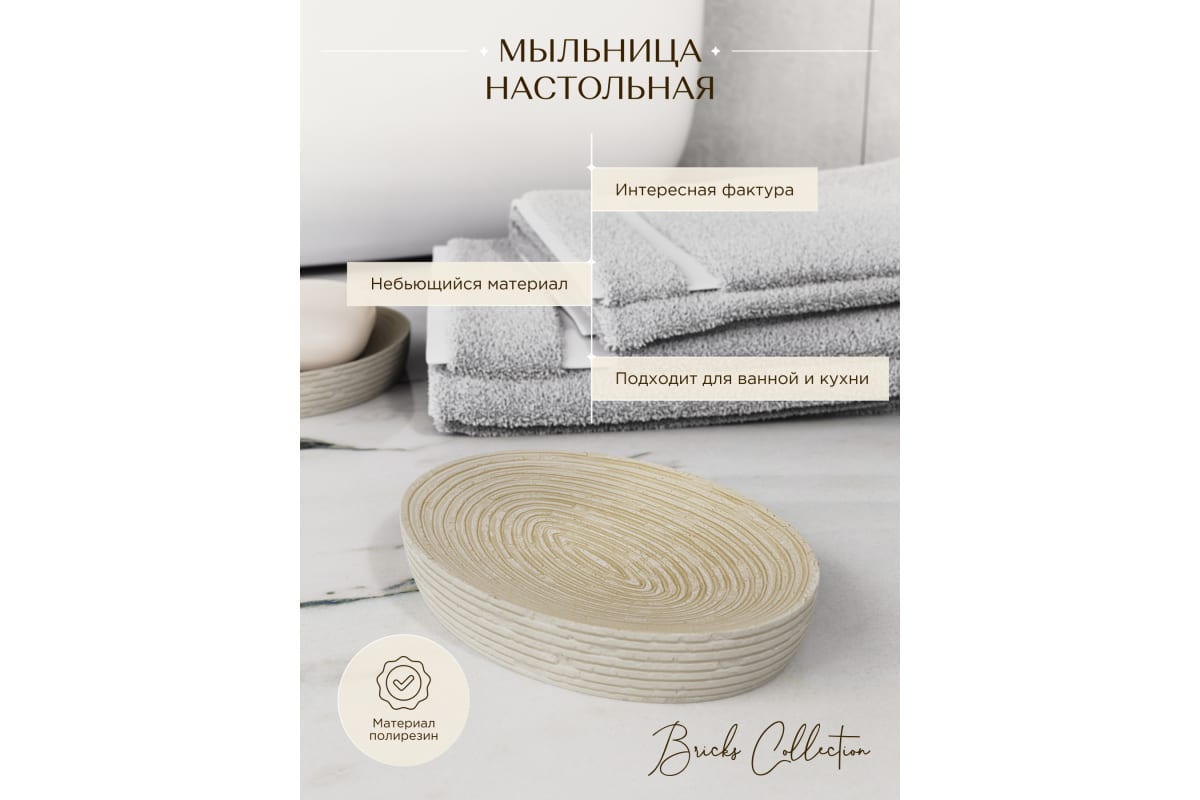 Мыльница настольная, полирезин, бежевая "Fora Bricks" BRK036BE в Спасск-Дальний