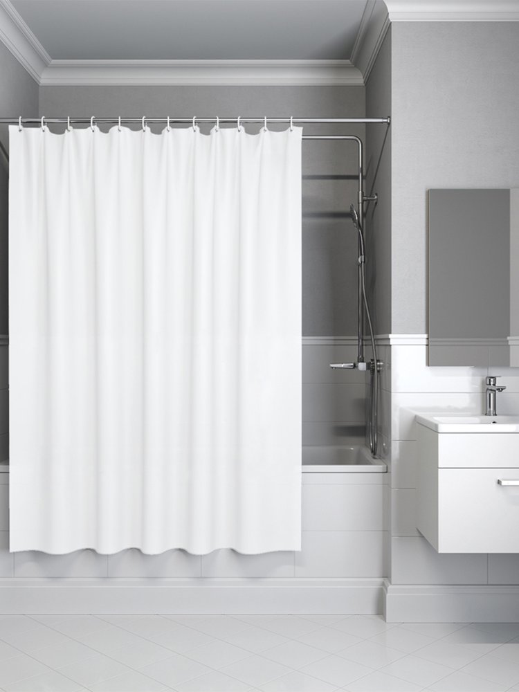Надёжная защита ванной комнаты от брызг и влаги благодаря плотному водоотталкивающему полиэтилену – просто установите и наслаждайтесь комфортом! Штора идеально подходит для стандартных и просторных душевых и ванн, обеспечивая чистоту и аккуратность помещения.