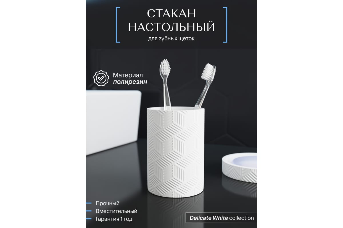 Стакан д/зубных щеток, полирезин, белый "Fora Delicate White" DLW044