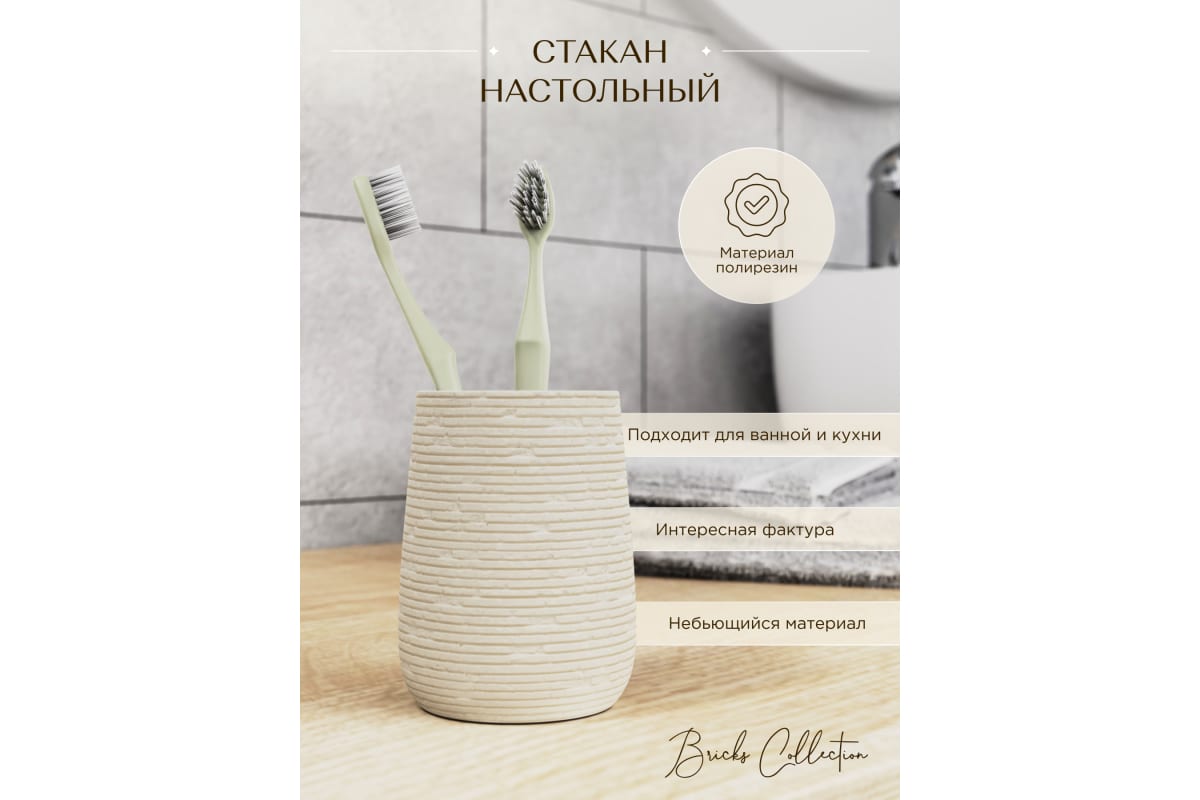 Стакан д/зубных щеток, полирезин, бежевый "Fora Bricks" BRK044BE в Спасск-Дальний