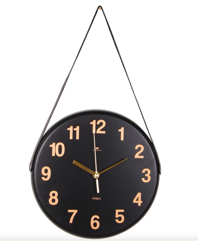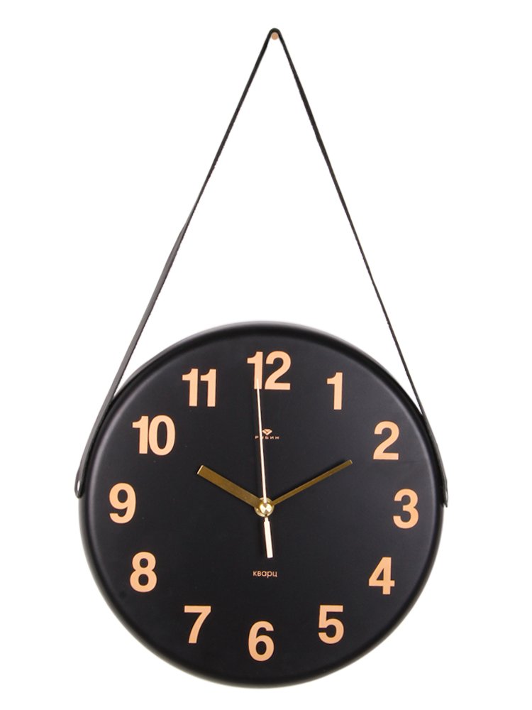 Часы настенные (d=27) "Классика" с ремешком, корпус черный 2626-012