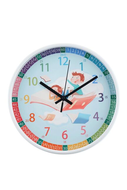 Яркие настенные часы 25 см с крупными цифрами для учёбы и интерьера детской, надёжный механизм, безопасный пластик, лёгкая установка.