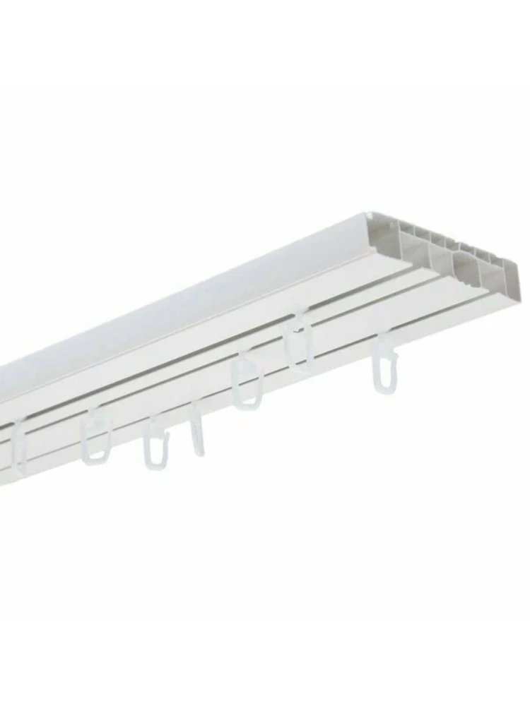 Комплектующие к карнизу: ПВХ-шина 2-х или 3-х полозная, крючки, стопоры. Профиль и фурнитура комплектуются вместе. Карниз имеет индивидуальную упаковку. Количество в упаковке: 4 шт. Трёхрядный потолочный карниз 3 м для штор и тюля, с прочным креплением и универсальным дизайном, подходит для любого интерьера.