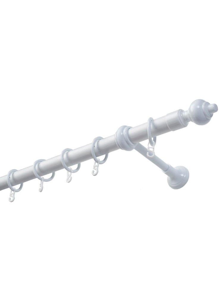 Комплектующие: стальная ламинированная труба d-28 мм, пластиковая фурнитура (кронштейны, кольца, крючки, наконечники), дюбели, саморезы. Карниз имеет индивидуальную упаковку. Пластиковый карниз 3 м, диаметр 28 мм, белый, 1 ряд – прочный и влагостойкий, легко устанавливается, идеально подходит для тяжелых штор.