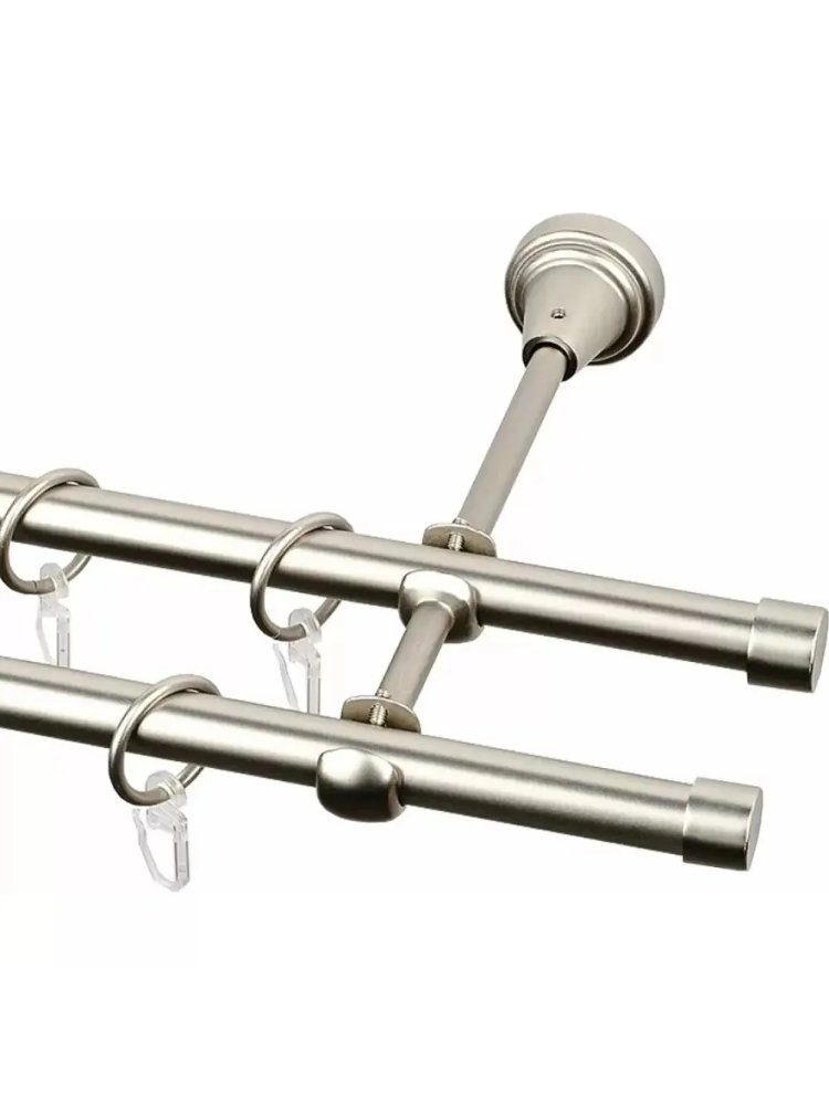 Карниз кованый гладкий 2-х рядный, диаметр 16 мм, длина 2,8 м, цвет сатин. Прочный металл, стильный дизайн, для штор любого веса, легкий монтаж.