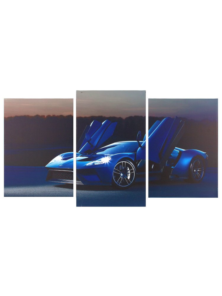 3-модульная картина 70×105 см с изображением синей машины—современное интерьерное решение, легко монтируется и устойчива к выгоранию.
