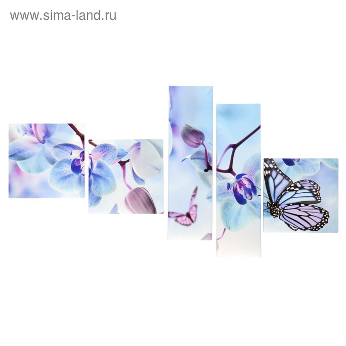 Картина модульная Голубые цветы 3- 34*34см, 2-20*70 см; 145х70 2146636 в Спасск-Дальний