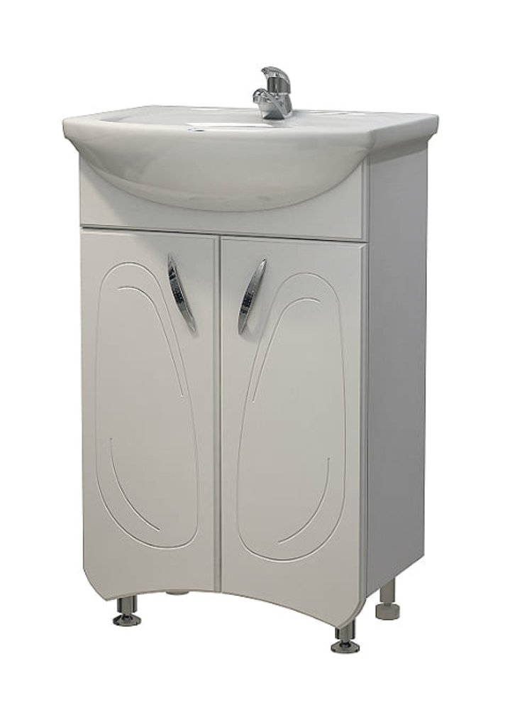 Удобная тумба с керамическим умывальником, влагостойкий корпус, современный дизайн — оптимальный выбор для ванной комнаты.
