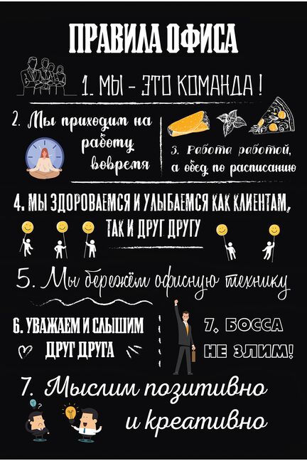 Постер-магнит (20*30) "Правила офиса", черный фон RM-0020 в Спасск-Дальний