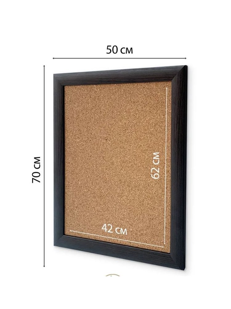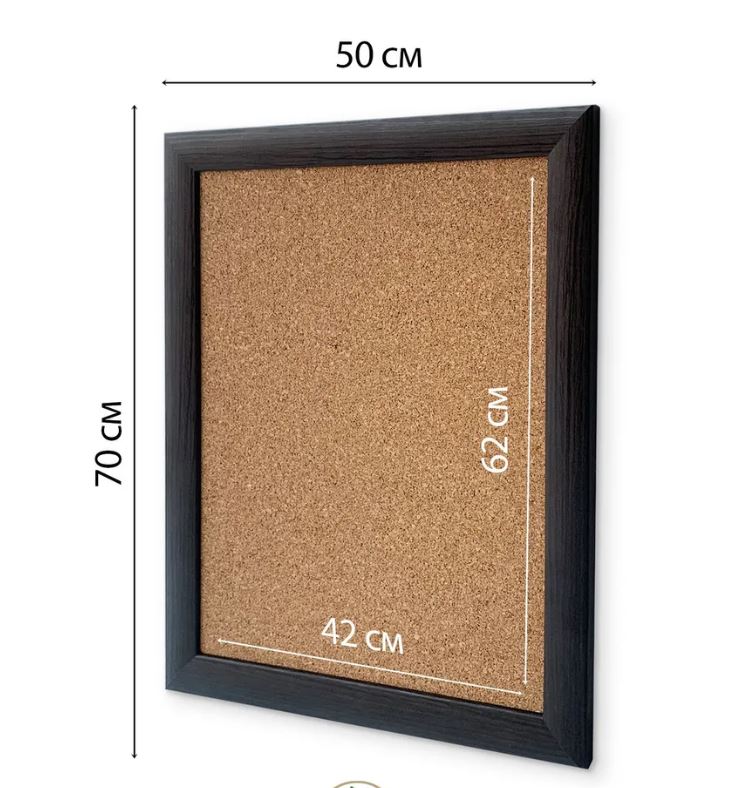 Пробковая доска 50×70 см для заметок и схем, натуральный материал, легко крепится, идеальна для офиса, строительных и бытовых нужд.