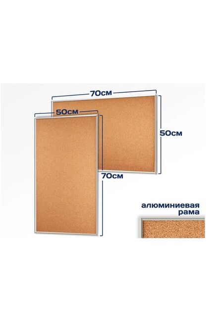 Пробковая доска 50×70 см из натурального материала для заметок и органайзера. Легко крепится, удобна для организации задач и напоминаний.