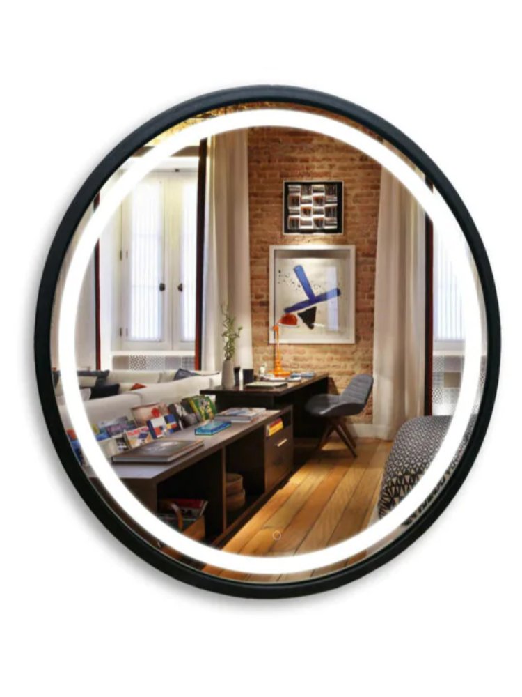 Гарантия: 2 года Материал рамы — пластик (цвет черный) Размер: 770 х 770 х 40 мм Крепление в комплекте Класс защиты — IP 44 Класс энергетической эффективности: А++ Подсветка — LED лента (цвет белый 6000К) Напряжение подключения — 220 Вт, 50Гц Влагостойкое, минимальные оптические искажения LED-подсветка выдерживает до 50 тыс. часов работы в непрерывном режиме Сенсорный выключатель С функцией плавного диммирования С запоминанием последнего значения Короткие касания светящейся области включают/выключают подсветку Длительное касание меняет яркость свечения AC/DC трансформатор Круглое LED-зеркало d770 мм с сенсорным включением и влагостойкой пластиковой рамой, подходит для ванной, легко монтируется и экономит электроэнергию.