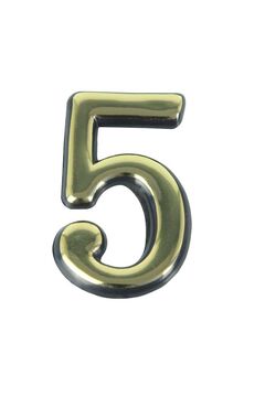 Золотистая дверная цифра для обозначения адреса, устойчива к погодным условиям, легко монтируется, отличается прочностью и стильным дизайном.