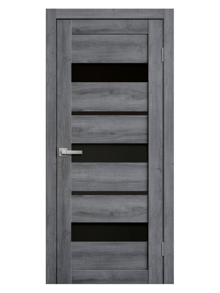 Современное решение для стильного интерьера: дверное полотно L20 с черным стеклом и отделкой "Дуб Стоунвуд" идеально подходит для жилых и коммерческих помещений, создавая элегантный акцент в любой обстановке.