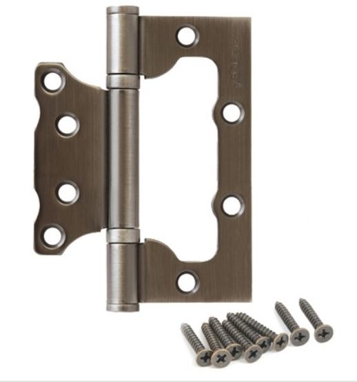 Универсальные накладные петли Apecs из стали, не требующие врезки в дверное полотно. Предназначены для деревянных межкомнатных дверей. Толщина карты 2,5 мм, высота 100 мм, ширина 75 мм. Макс. вес двери на 2 петли 30 кг. Прочная стальная петля 100×75×2,5 мм с графитовым покрытием, без врезки. Для деревянных и металлических дверей внутри и снаружи помещений.