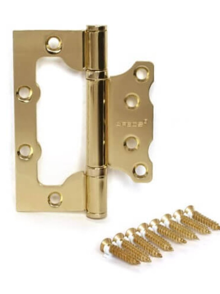 Надёжная петля для межкомнатных и входных дверей — идеальный выбор для дома и офиса. Легкий монтаж без врезки обеспечивает быстрый и чистый процесс установки. Стильное гальваническое покрытие под золото добавит изысканности и долговечности вашему интерьеру.