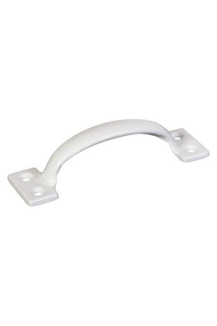 Металлическая скоба 90 мм, прочная, белого цвета, устойчива к износу и коррозии, легко монтируется, подходит для дверей, мебели и окон.