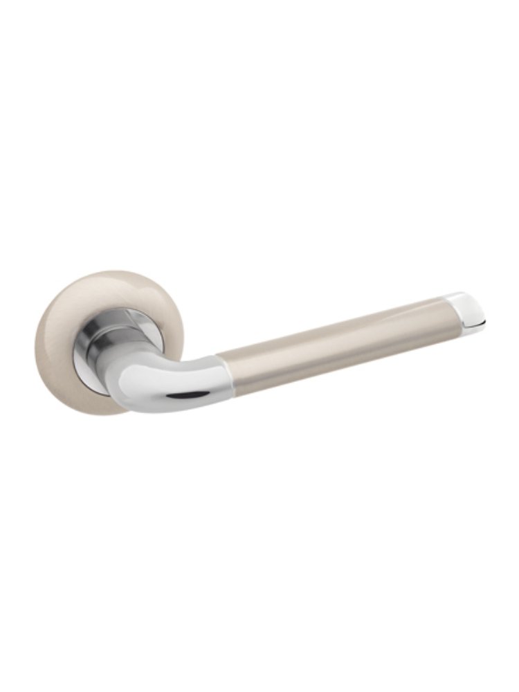 Элегантная дверная ручка универсального применения для межкомнатных и входных дверей в квартирах, офисах и коммерческих помещениях. Матовый никель в сочетании с хромом подчеркивает современный интерьер и добавляет изысканности в отделку дверей любого типа.