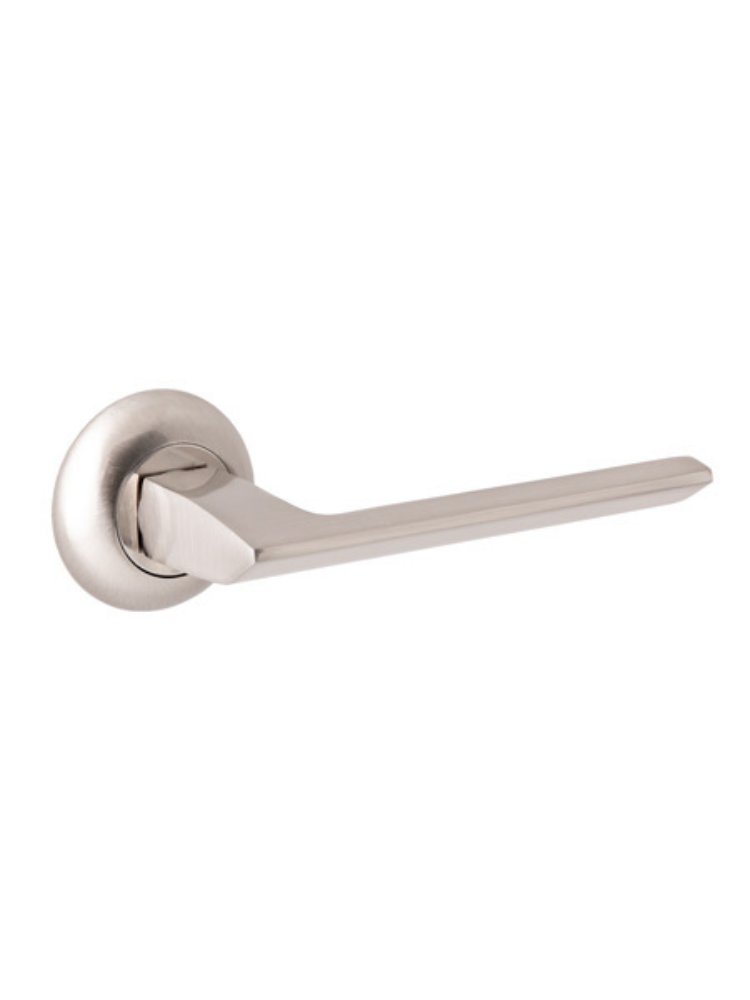 Стильная дверная ручка с матовым никелевым покрытием, устойчива к износу, подходит для любых дверей. Легкая установка, эргономичный дизайн.