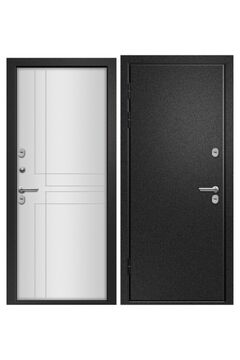 Тип внешней отделки: порошково-полимерное покрытие, Тип внутренней отделки: панель MDF с ПВХ покрытием. Верхний замок: BORDER ЗВ 8-8К.5, сувальдного типа 4-го класса взломостойкости. Нижний замок: Blockido C1, с цилиндровым механизмом с вертушком и ключами с перфорацией, 4-го класса взломостойкости. Магнитный уплотнитель. Накладной порог из нержавеющей стали. Современная металлическая дверь с повышенной безопасностью, утеплением и стильной отделкой. Решение для дома и офиса стандартного проема.