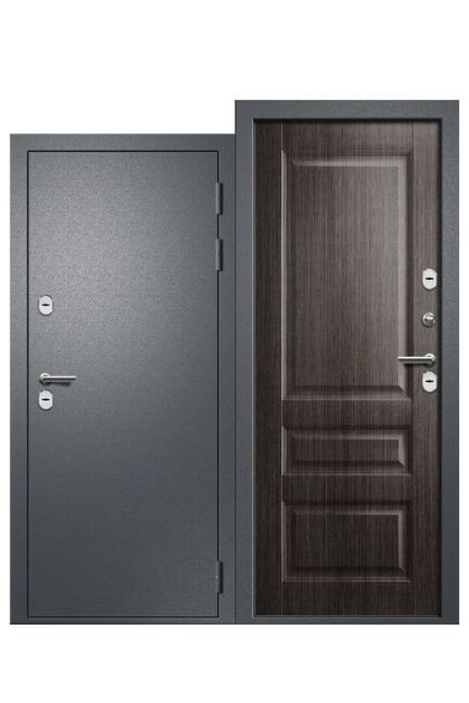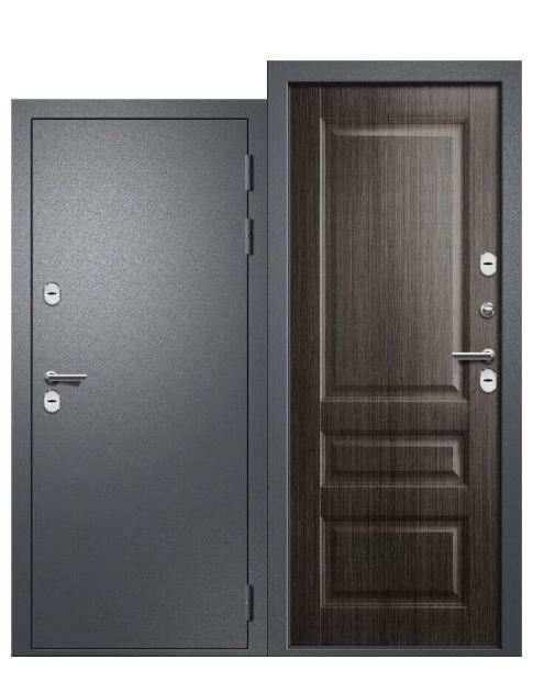 Производитель: Ретвизан. Внешнее покрытие: трехслойное полимерное покрытие «Букле черный». Внутреннее покрытие: фрезерованная влагостойкая с рисунком МДФ 16 мм. Толщина дверного полотна: 110 мм. Глубина дверного короба: 145 мм. Толщина металла: 1,4 мм. Терморазрыв: терморазрыв на коробе и полотне. Внутреннее наполнение: экструдированный пенополистирол. Уплотнитель: 3 контура, специализированный дверной уплотнитель. Замки: 2шт, BORDER сувальдный. Ночная задвижка: есть. Эксентрик: есть, для регулировки прижима полотна. На основном замке металлический эксцентрик для защелки, пластиковый - для ригеля замка. Ручка: раздельная, цвет - хром. Накладки: овальные с защитой от сквозняков. Глазок: есть. Противосъем: штыри, 3шт. Петли: 3шт., наружные, осевые, открывание 180°. Входная термодверь: усиленная тепло- и шумоизоляция, стойкое антивандальное покрытие, двойной замок, для дома и коттеджа.