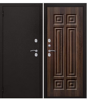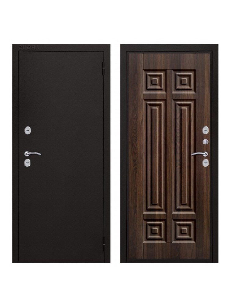 Петли - 2 шт., наружные, открывание 180°. Производитель - Россия. Толщина полотна - 100 мм. Глубина коробки - 126 мм. Внешнее покрытие - Металл полимерно-порошковое покрытие "Букле чёрный". Внутреннее покрытие - МДФ панель 12 мм. "Статус коньяк". Толщина металла - 1,5 мм. Наполнение - Пенополистирол 84 мм. Уплотнитель - 3 контура D-образный. Основной замок - Аргус сувальдный ключ/ключ. Дополнительный замок - Аргус сувальдный ключ/ключ. Броненакладка - есть. Ночная задвижка - независимая. Фурнитура - хром. Терморазрыв - на полотне и коробке.