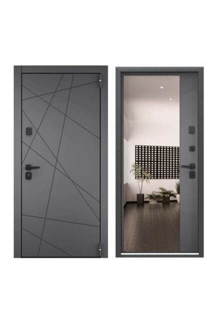 Металлическая дверь 880х2050 мм с усиленной изоляцией, стильной отделкой под холст вулкан и надёжным замком для максимальной безопасности.