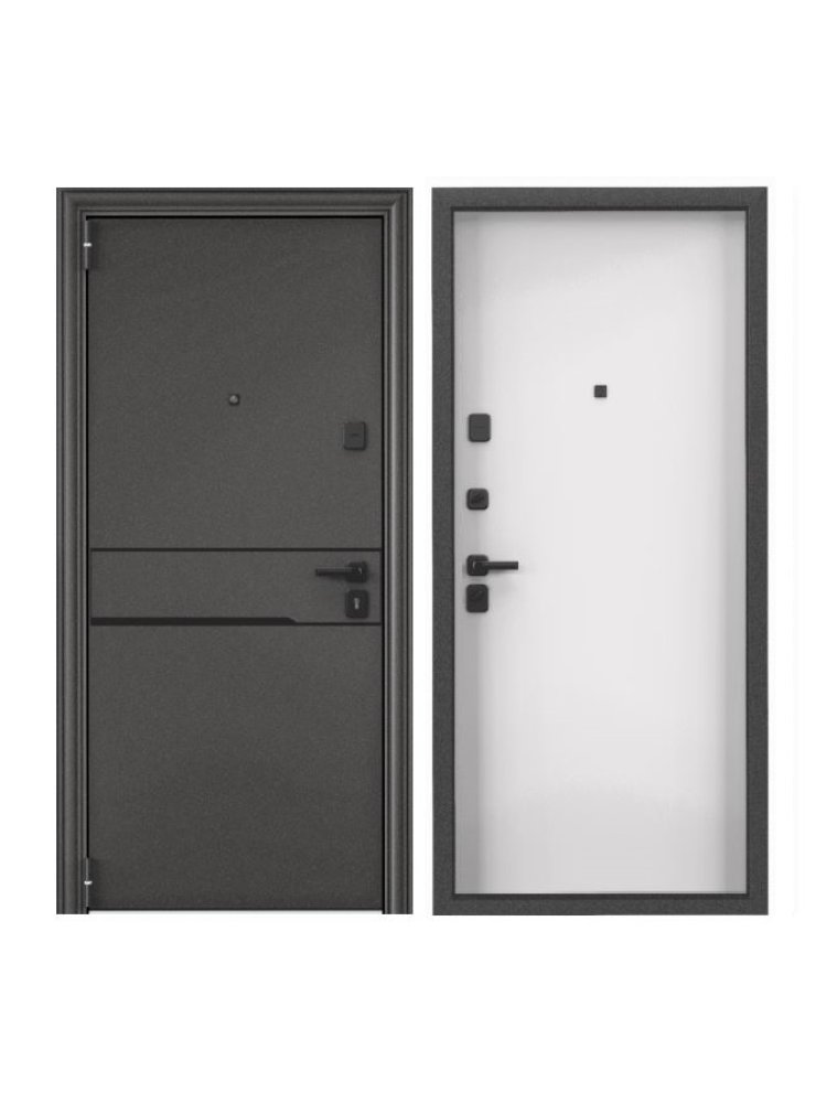 Полотно толщиной от 90 мм. Толщина металла на полотне 1,4 мм. Заполнение полотна- мин. плита высокой плотности и пенополистирол. Стальной нерж. порог. Толщина короба- 119,5мм. Толщина мет. на коробе- 1,4 мм. Два замка 4-го (высшего) класса взломостойкости - цилиндровый (Blockido C1- основной) и сувальдный (Border 3B 8-6- доп.). Два противосъёмных ригеля с петлевой стороны. Ночная задвижка. Бронинакладка. Магнитный уплотнитель.