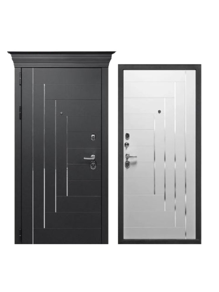 Внешнее покрытие: Софт черный, МДФ 10 мм, Молдинг хром Внутреннее покрытие: Белый софт, Молдинг хром, фрезерованная МДФ-панель 10 мм Толщина дверного полотна: 106 мм. Глубина дверного короба: 125 мм Наполнитель: Базальтовая плита Уплотнитель: 3 контура вставного уплотнителя Ручка: раздельная Краска: Порошково полимерное покрытие, Муар, черный с блестками Глазок: широкого обзора Петли: 3 шт., наружные, открывание 180° Дополнительный замок: сувальдный Гардиан 30.01 Прочная металлическая дверь 860 мм с капителью, покрытием soft-touch, с отличной шумо- и теплоизоляцией, системой замков для надёжной защиты.