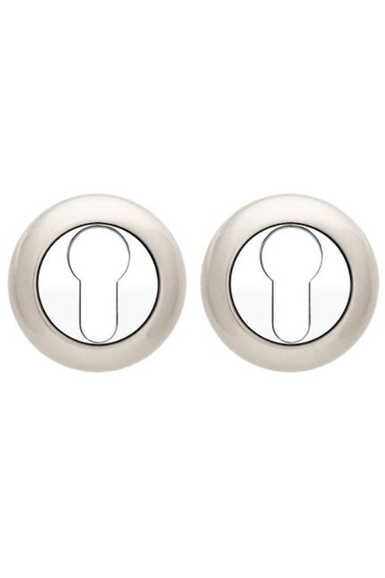 Накладки под евроцилиндр. Фиксаторы для защелок. Матовое никелевое покрытие, совместимость с цилиндрами 14 мм, стойкость к износу и легкая установка — идеальный выбор для защиты замка.