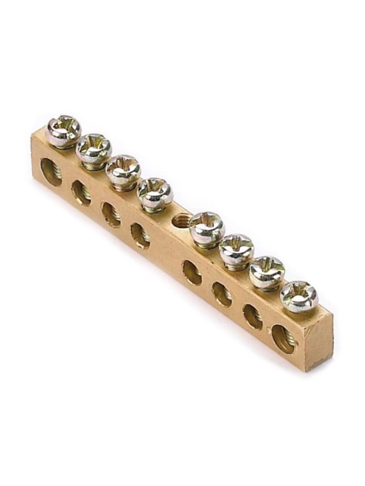 Нулевая шина N 6×9 мм на 8 отверстий из меди, абсолютно безопасное подключение и надежное соединение нулевых проводников.