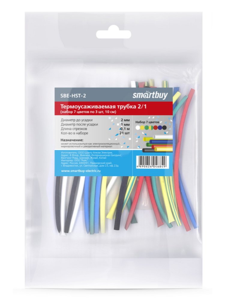 Трубка термоусаживаемая 2/1 набор 7 цветов по 3 шт,10 см Smartbuy в Спасск-Дальний