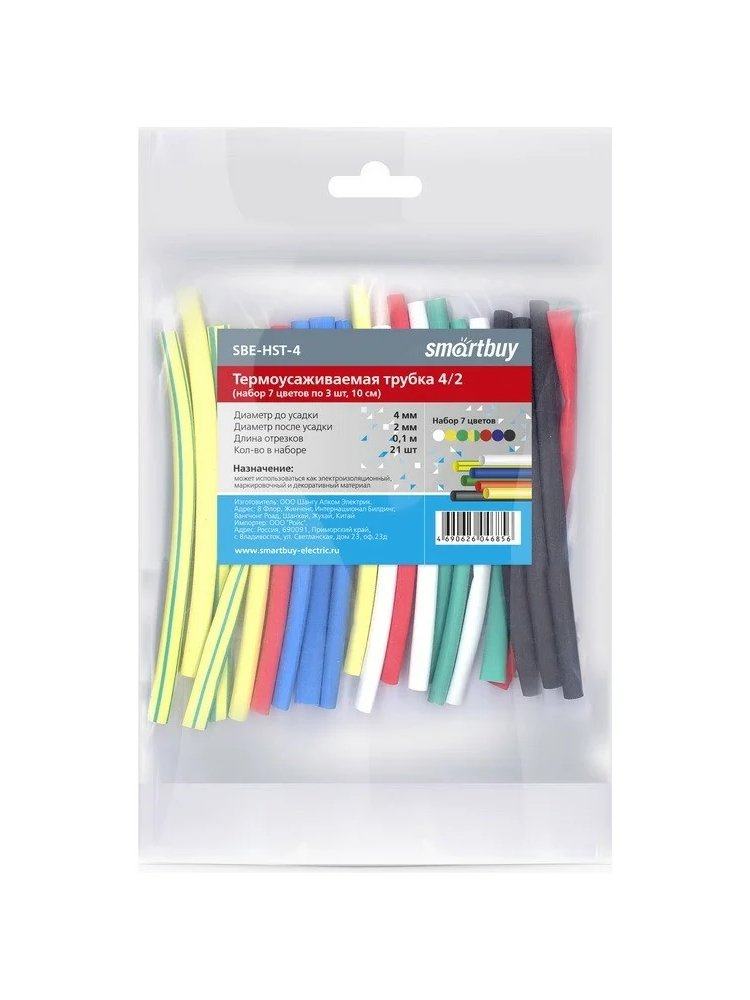 Трубка термоусаживаемая 4/2 набор 7 цветов по 3 шт,10 см Smartbuy в Спасск-Дальний
