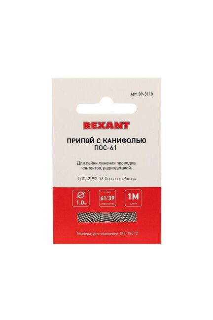 Припой d1мм с канифолью (олово 61% свинец 39% флюс 2.2%) спираль 1м REXANT в Спасск-Дальний