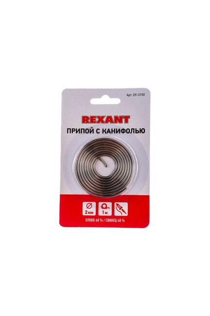 Припой d2мм с канифолью (олово 60% свинец 40% флюс 2.2%) спираль 1м REXANT в Спасск-Дальний