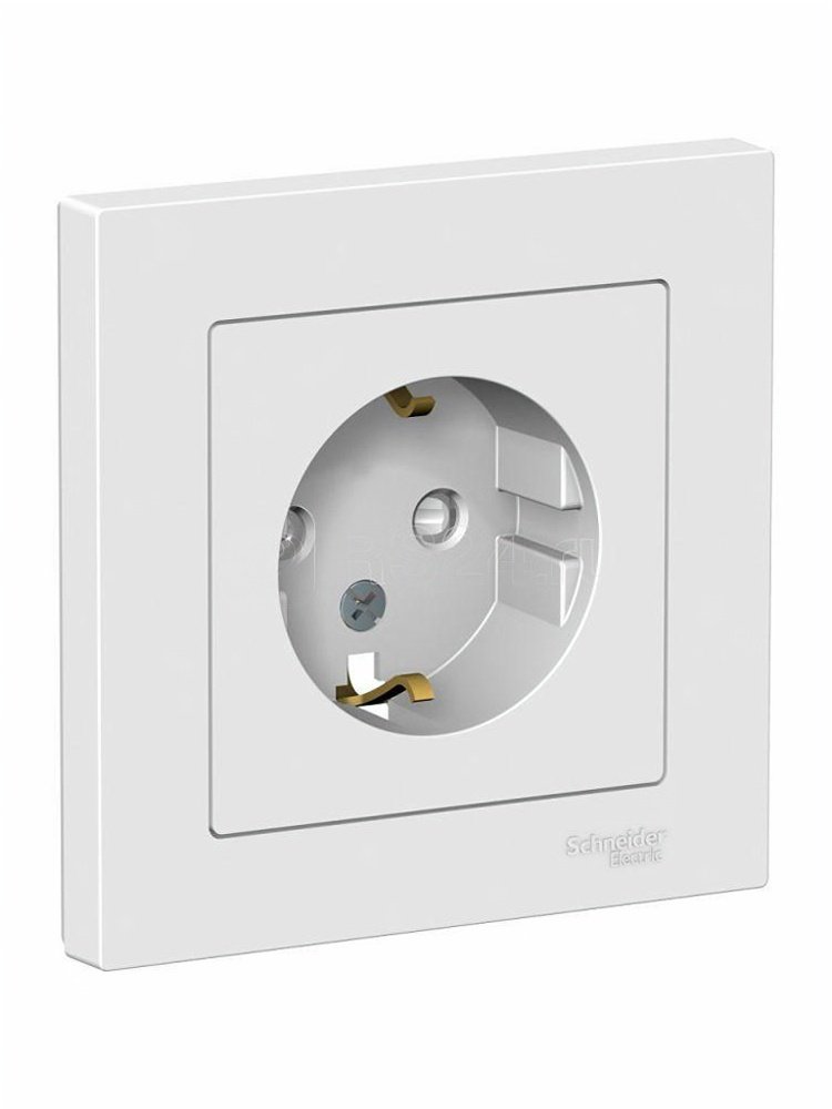 Розетка 1-постовая с з/к со шторками 16А моноблок, белая AtlasDesign SE