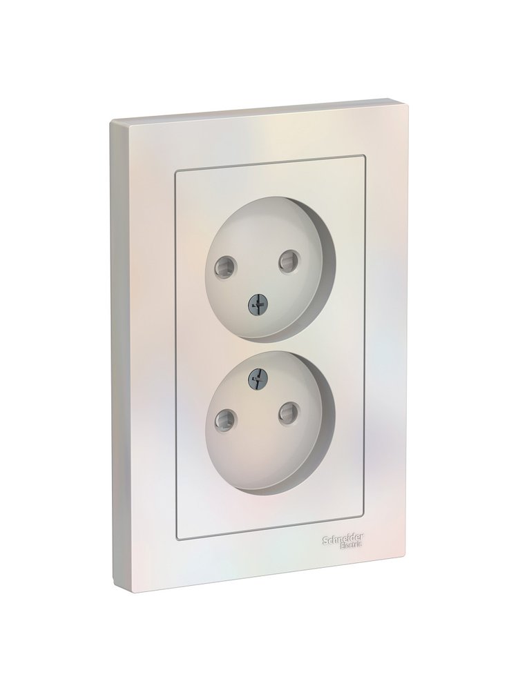 Двойная розетка без заземления с защитными шторками, стильный цвет жемчуг, моноблок — безопасность, эстетика и лёгкая установка для любого помещения.