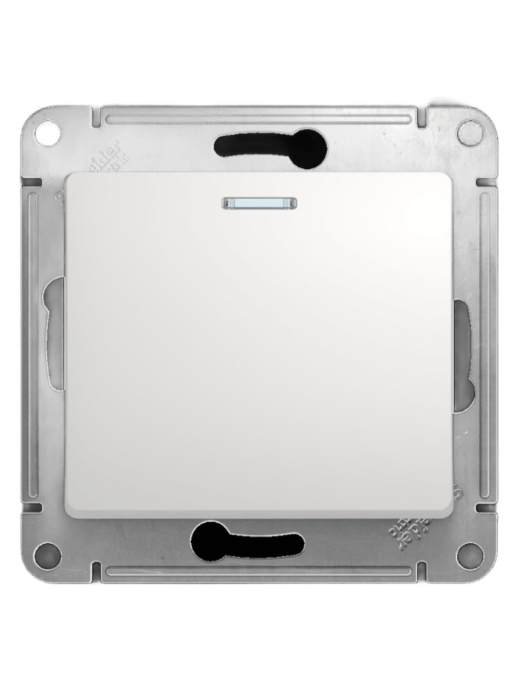 Одноклавишный выключатель с подсветкой, белый, надежный механизм, удобство поиска в темноте, быстрый монтаж и безопасная эксплуатация.