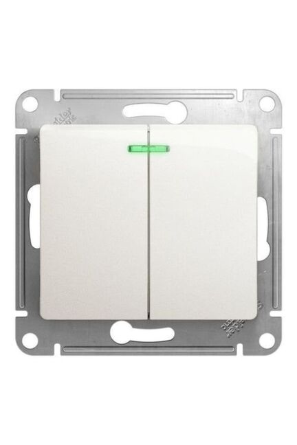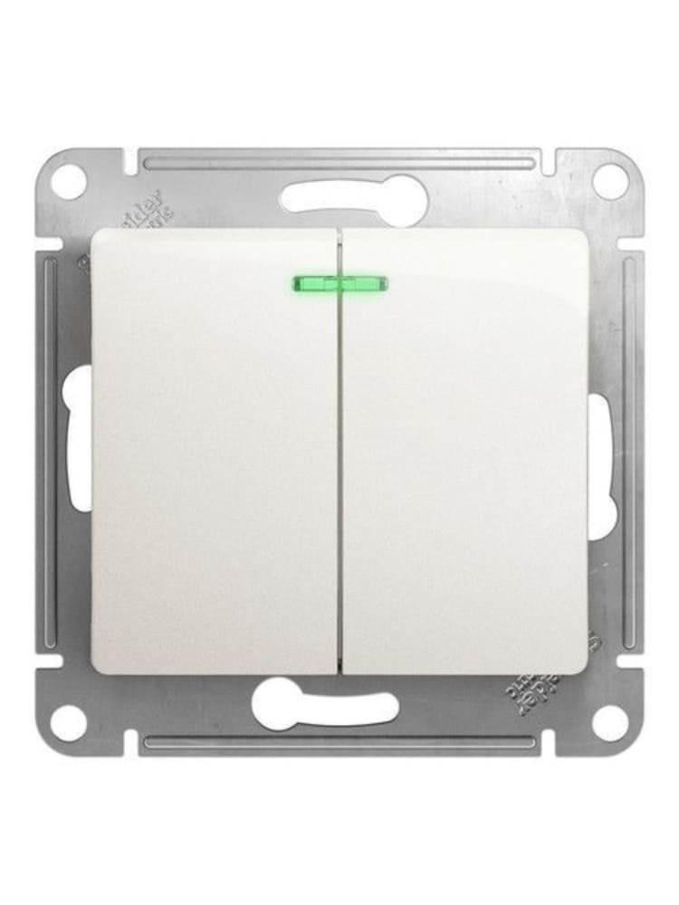 Выключатель 2-клавишный механизм, белый с подсветкой Glossa SE в Спасск-Дальний