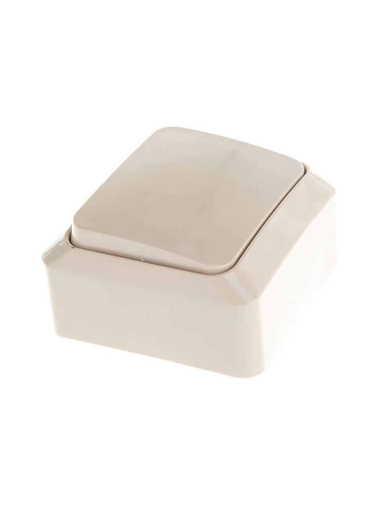 Кнопочный выключатель на 10А для открытой установки, кремовый цвет, надёжная механика, подходит для дома и офиса, простой монтаж.