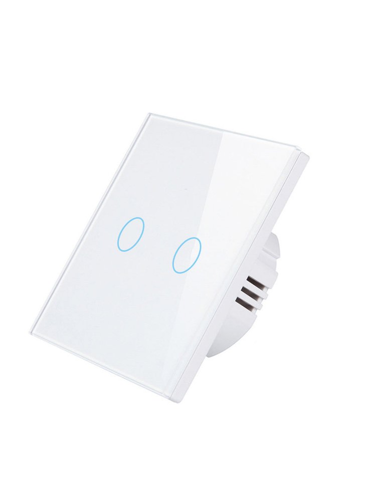 Сенсорный 2-канальный выключатель с программируемыми режимами, белый цвет, элегантный дизайн и простая установка для комфортного управления светом.