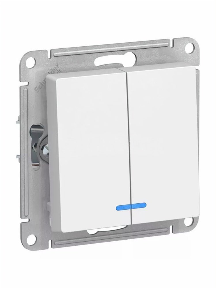 Выключатель 2-клавишный механизм, белый с подсветкой AtlasDesign SE