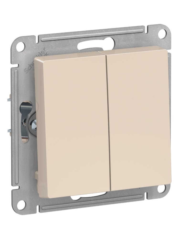 Элегантный двухклавишный выключатель бежевого цвета отлично подходит для современных квартир, домов и офисов, обеспечивая удобное управление освещением в двух зонах.