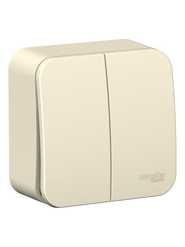 2-клавишный, накладной, с изолирующей пластиной, 10А 250В, молочный цвет, удобное и безопасное управление освещением для любых помещений.