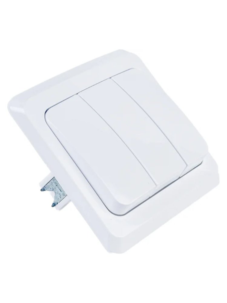 Три клавиши, ток 10А, белый цвет, простой монтаж. Подходит для управления тремя группами освещения в жилых и офисных помещениях.
