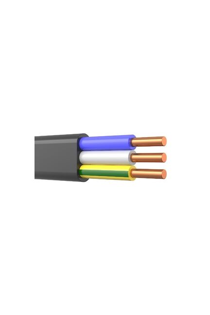 Кабель ВВГнг медный плоский используется для передачи и распределения электроэнергии и сигналов: в распределительных щитках, для запитки светового и силового оборудования. Применяется в помещениях, под открытым небом и под землей. Чувствителен к механическому воздействию и растяжению, при прокладки кабеля в грунте используются специальные защитные трубы. ВВГ Пнг LS особо рекомендован для применения на участках, где вероятность воспламенения считается особенно высокой. В — изолирован с помощью ПВХ-пластиката; В — оболочка из ПВХ-пластиката; Г— голый (без внешней защиты); П — плоский; НГ — стойкий к возгоранию при комплексной прокладке кабеля; (А) — класс пожарной безопасности категории A; LS — («low smoke») с пониженным дымовыделением. Трёхжильный медный кабель 1,5 мм², 50 м, не поддерживает горение, безопасен и удобен для монтажа бытовой проводки и освещения.