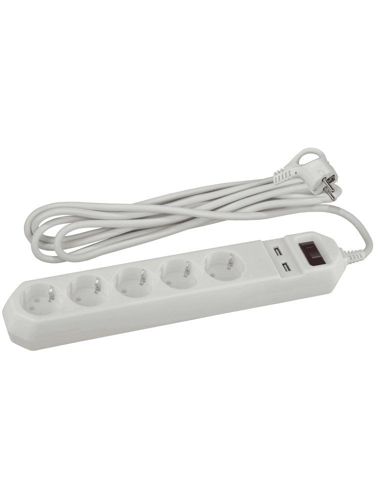 Идеальное решение для безопасного подключения инструментов и техники на строительной площадке, в мастерской или дома. 5 универсальных розеток с заземлением и 2 USB-порта — удобно для одновременной работы электроинструмента и зарядки устройств.