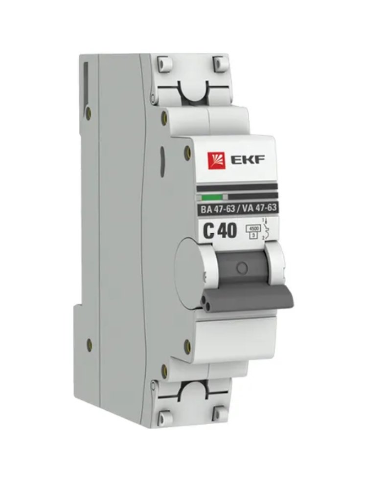 Автоматический выключатель 1P 40A (C) 4,5кА EKF PROxima - надежная защита цепей от перегрузок. Для сетей 230/400 В, монтаж на DIN-рейку.